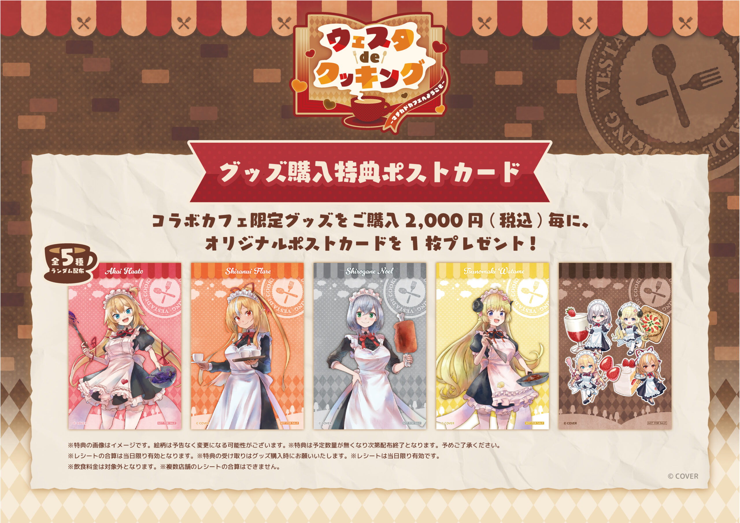 コラボカフェ限定グッズをご購入2,000円(税込)毎に、オリジナルポストカード(全5種)をランダムで1枚プレゼントします。