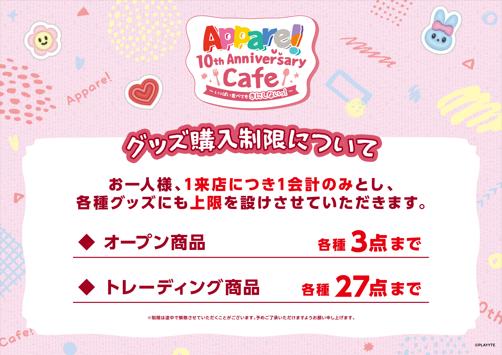 より多くのお客様にご購入いただけるようコラボグッズに購入制限を設けさせていただきます。(途中で制限数の変更や解除させていただく場合もございます)