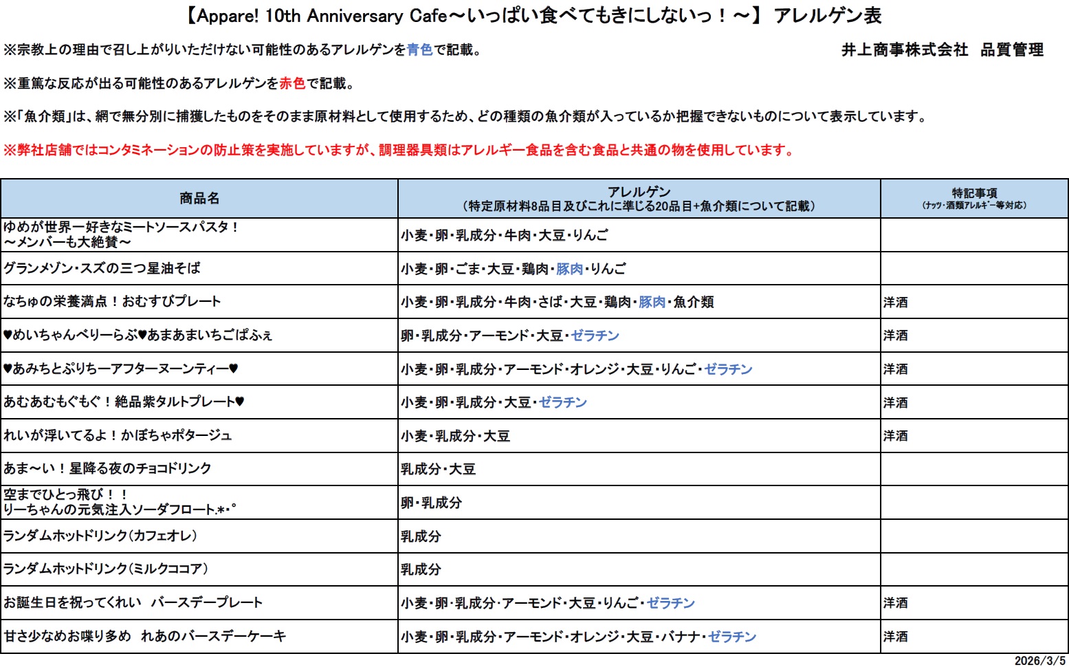 Appare! 10th Anniversary Cafe~いっぱい食べてもきにしないっ!~概要