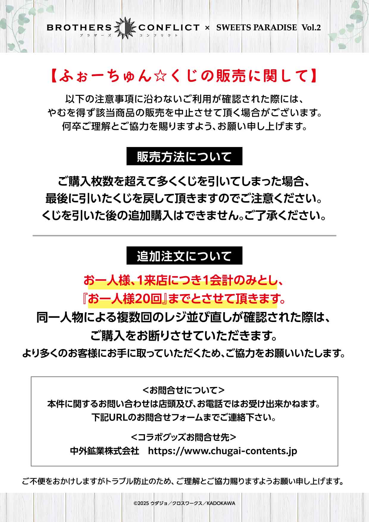 より多くのお客様にご購入いただけるようコラボグッズに購入制限を設けさせていただきます。(途中で制限数の変更や解除させていただく場合もございます)