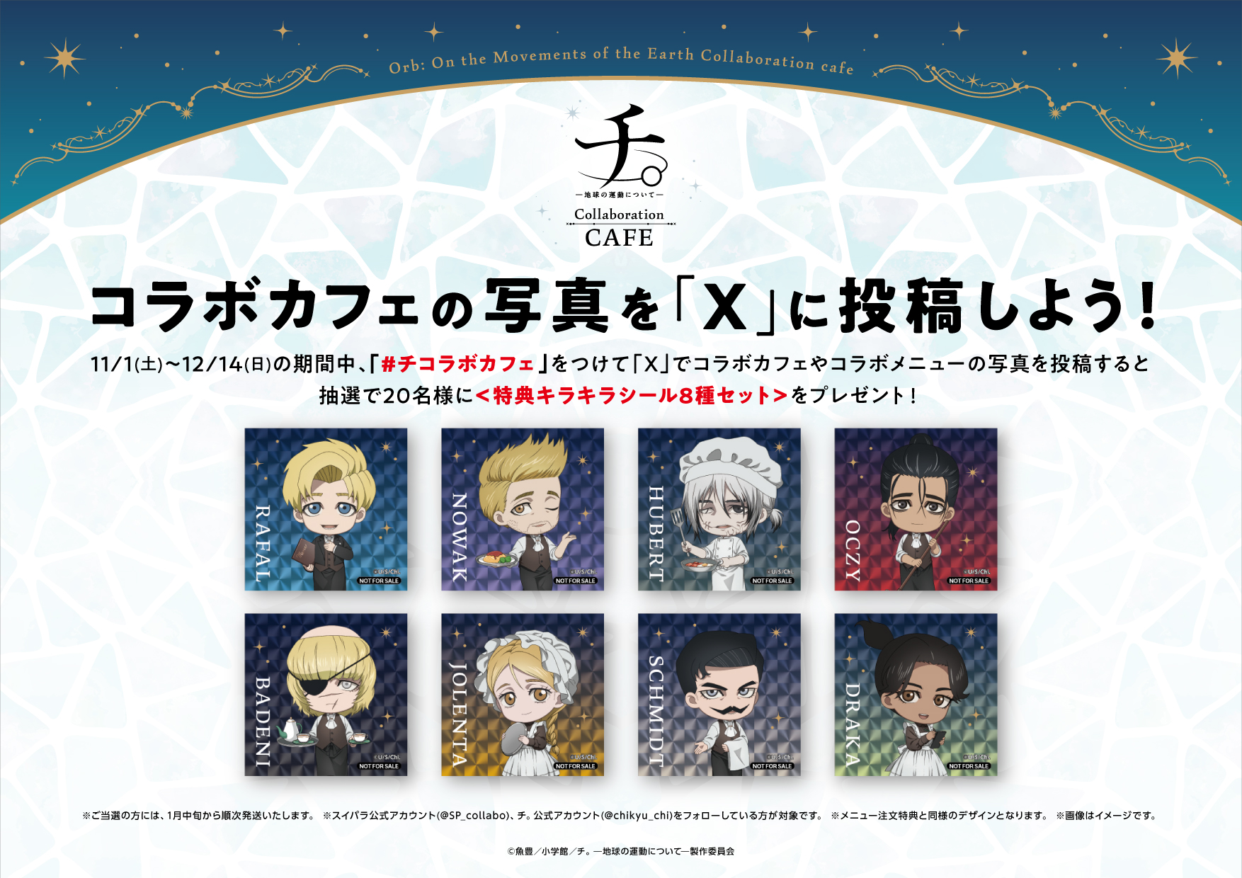 ※スイーツパラダイスコラボカフェ公式X(@SP_collabo)、チ。公式X(@chikyu_chi)をフォローしている方が対象です。