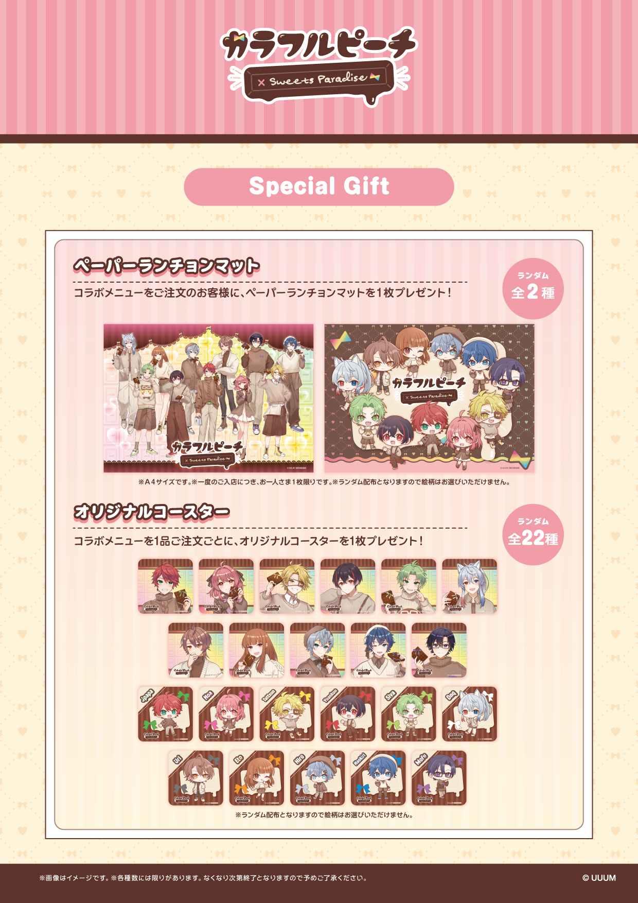 ※スイーツパラダイスで開催されるコラボレーションカフェは、コラボ目的ではない一般のお客様と同じ店内でのご利用となります。予めご了承ください。