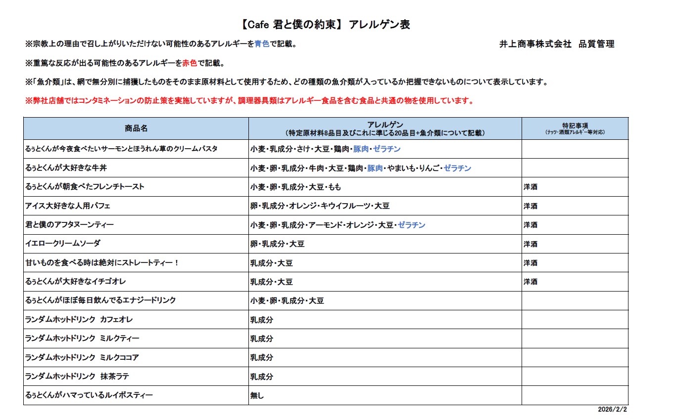 この機会にぜひ「Cafe 君と僕の約束」にご来店ください