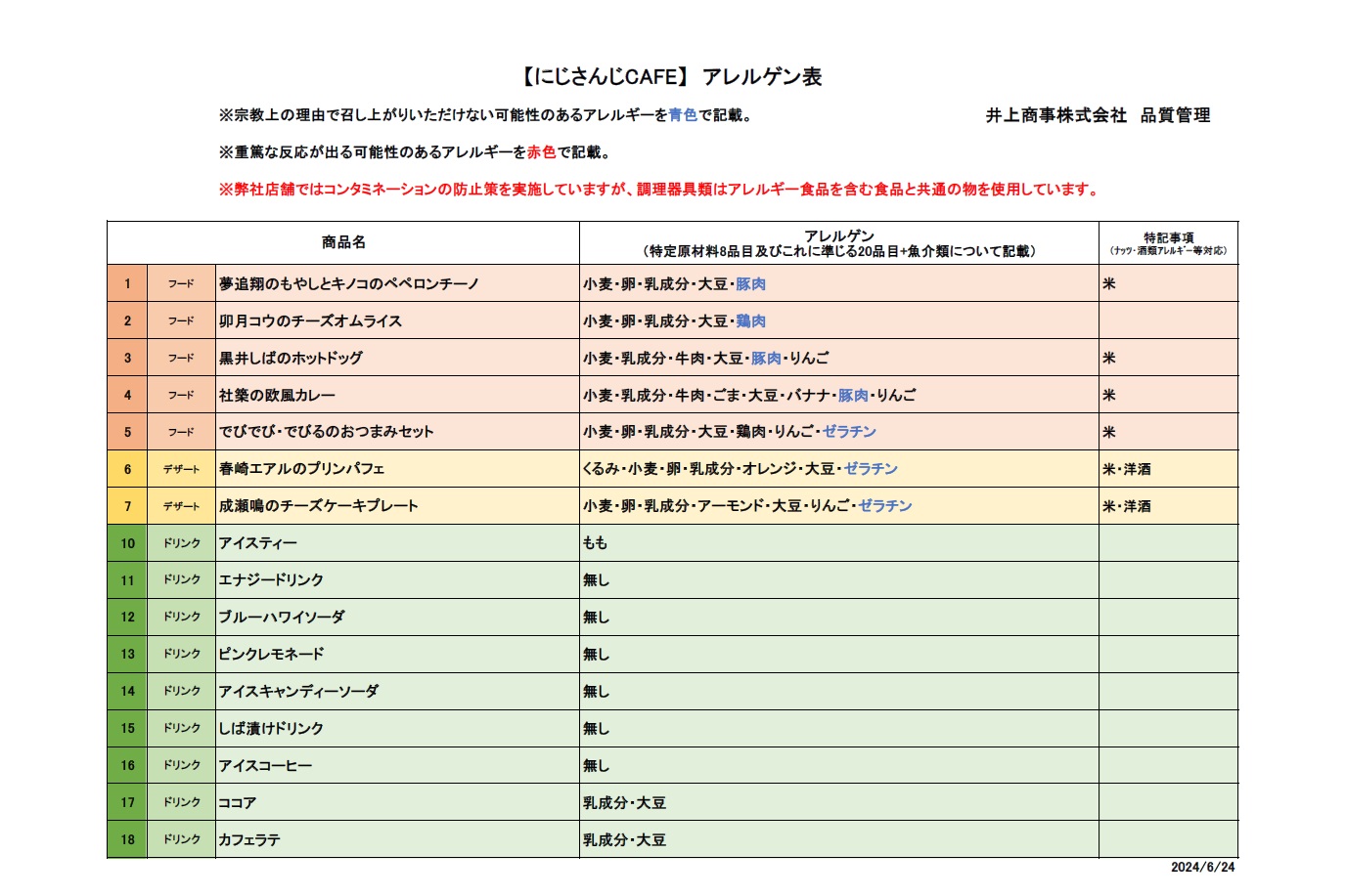 ■コラボメニューアレルゲン表