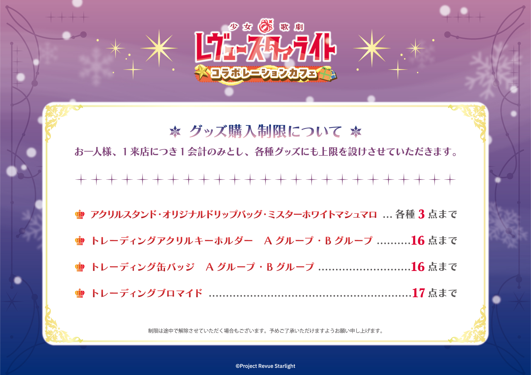 より多くのお客様にご購入いただけるようコラボグッズに購入制限を設けさせていただきます。