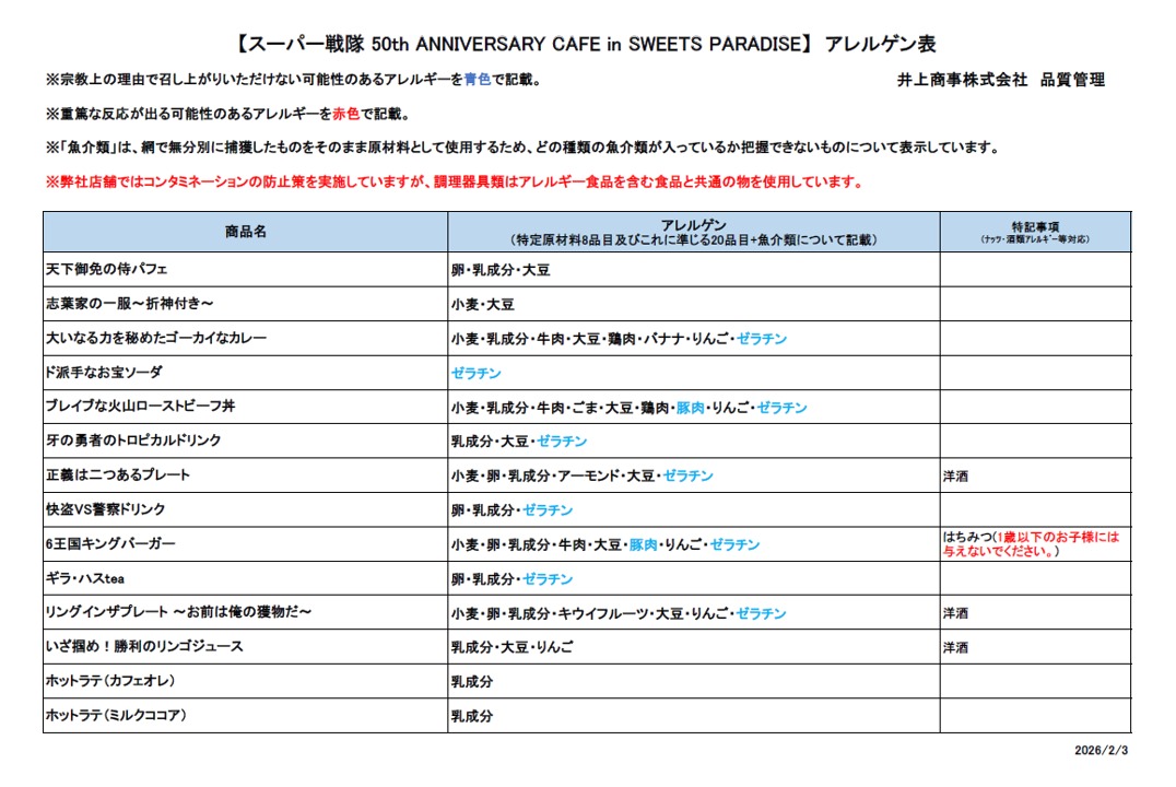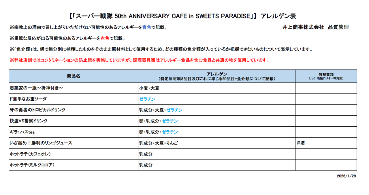 スーパー戦隊 50th ANNIVERSARY CAFE in SWEETS PARADISEの開催が決定!