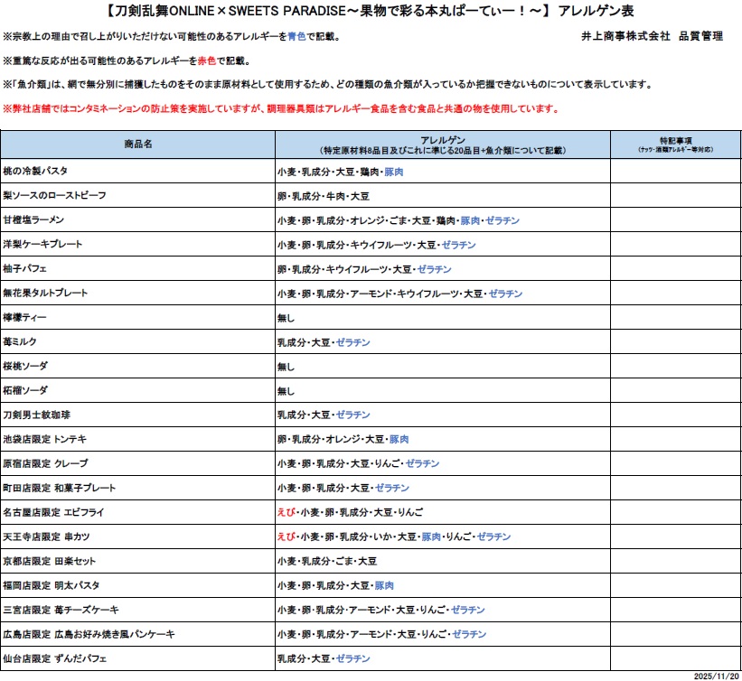 刀剣乱舞ONLINE×SWEETS PARADISE~果物で彩る本丸ぱーてぃー!~概要