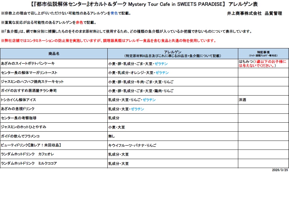 『都市伝説解体センター』オカルト&ダーク Mystery Tour Cafe in SWEETS PARADISE 概要