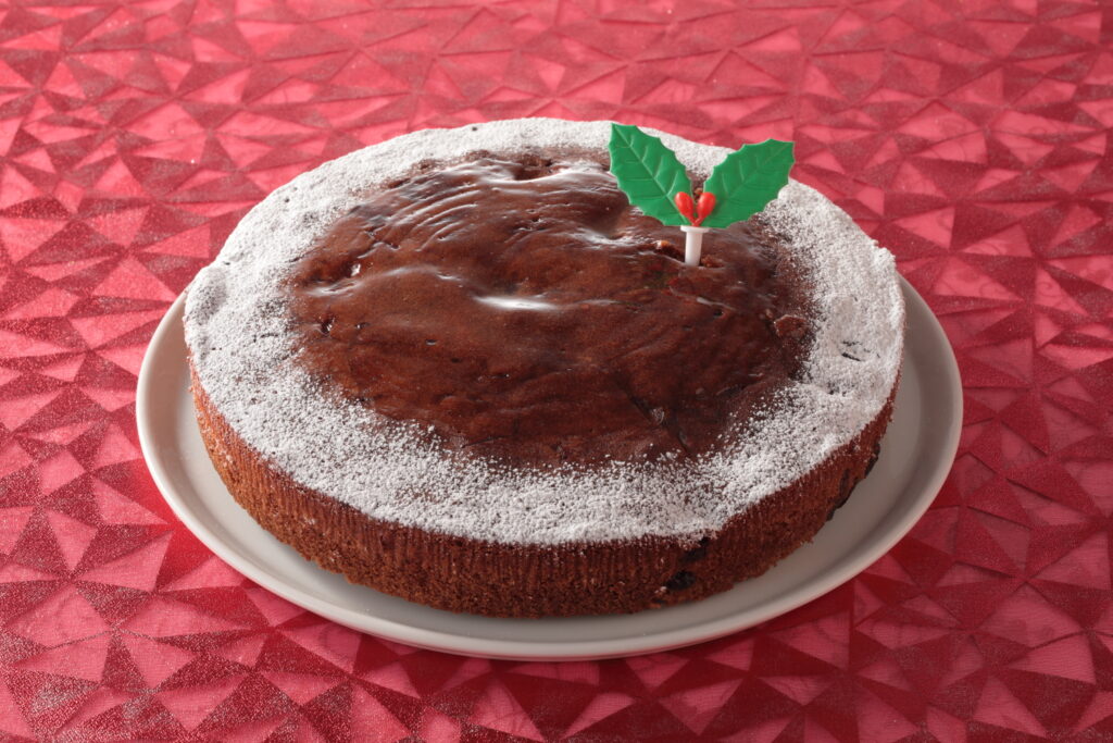 ココア生地の焼き菓子にラムレーズンを散りばめ、香りよく焼き上げました。仕上げにはアルコールを飛ばしたラムシロップをふりかけ、やさしい甘さの中にラムの豊かな風味が広がる焼き菓子に仕上げています。
