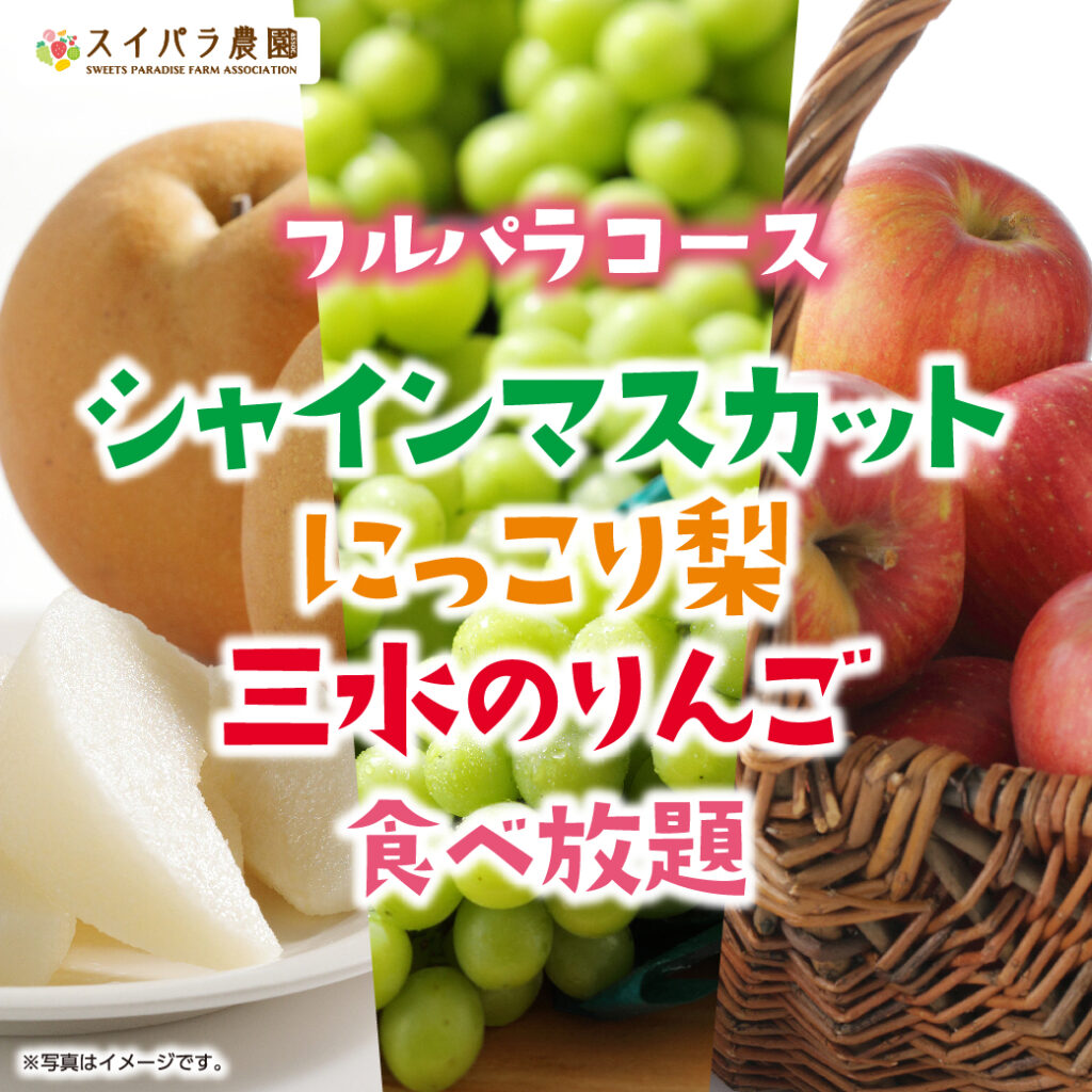 【11/5~】「シャインマスカット・にっこり梨・三水のりんご食べ放題」