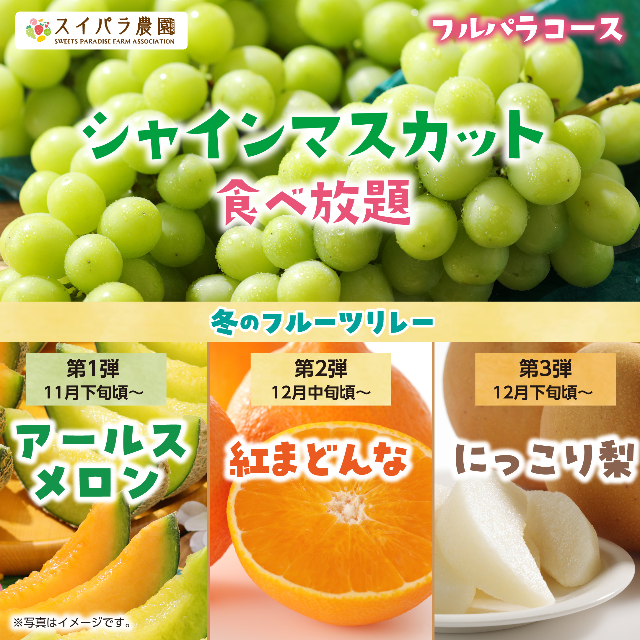 【11/28~】シャインマスカット食べ放題+冬のフルーツリレー