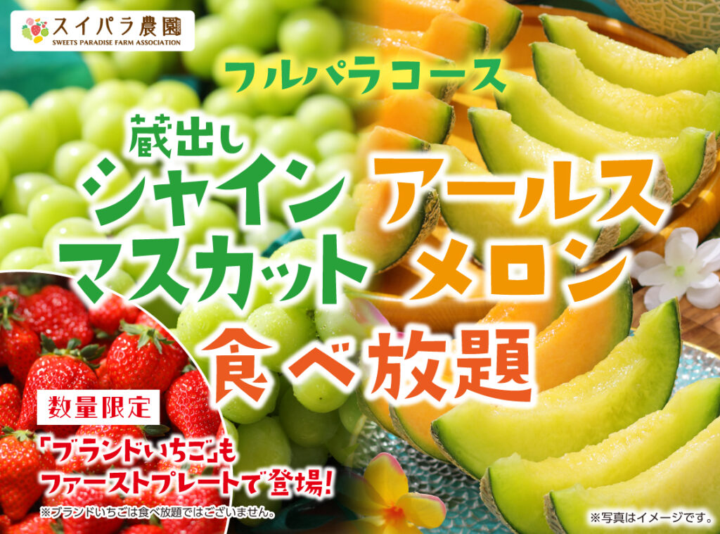 2026年1月1日(木)からのフルパラコースでは「蔵出しシャインマスカット・アールスメロン食べ放題 ブランドいちご登場!」を開催いたします。