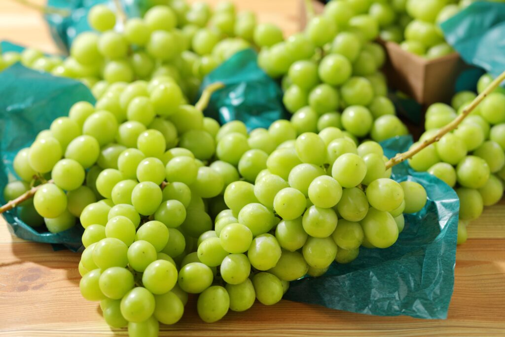 爽やかな酸味と強い甘味が特徴で、パリッとした食感がやみつきになります。熟してくると、だんだんと黄色みが強くなり、シャイン(Shine)という名前の通り、まるで金メダルのような輝きと最高の甘味を持ったシャインマスカットへ変化します。