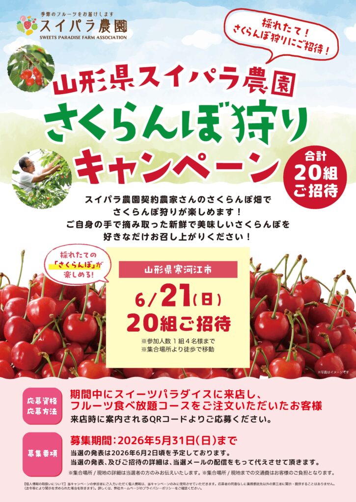 さくらんぼ狩りが楽しめる特別キャンペーンを開催します🍒