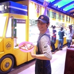 新宿東口店でしか食べられない釜焼きピザを持って、笑顔で登場したのは・・・